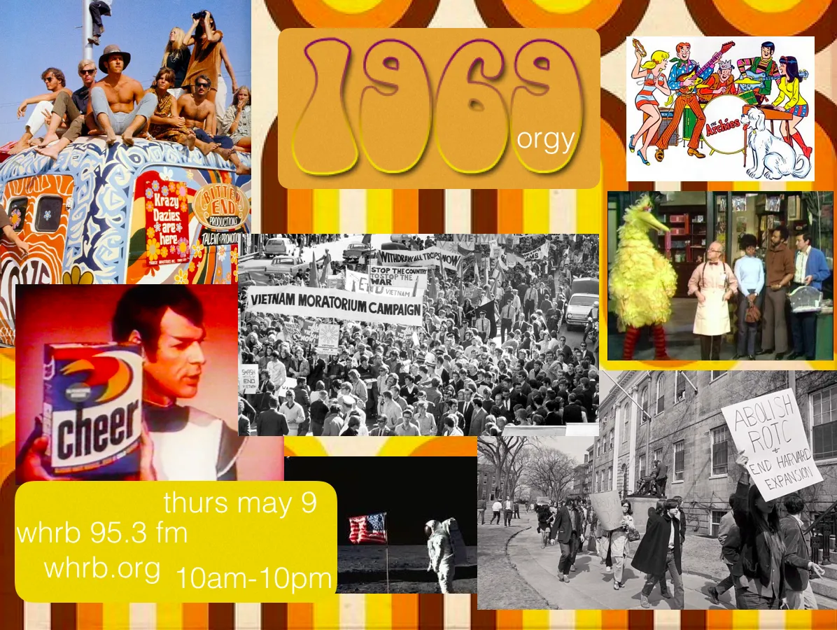 If you are interested in obtaining a list of the songs and commercials played on air, please contact pd@whrb.org. You can also see the playlist here: https://spinitron.com/WHRB/pl/8433730/The-1969-Orgy