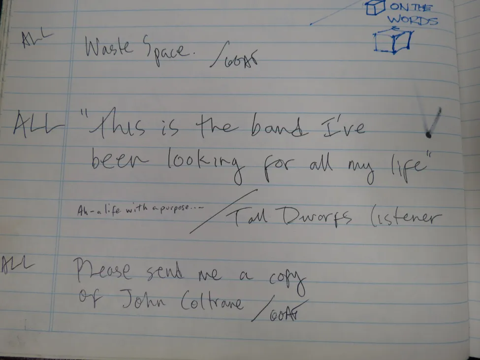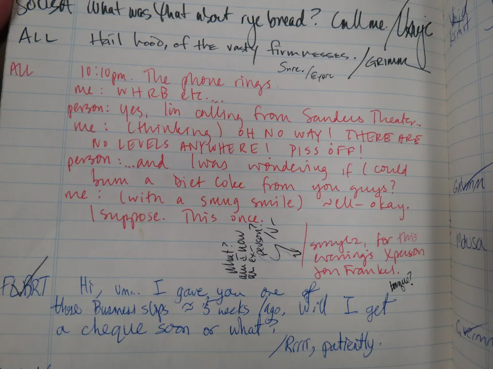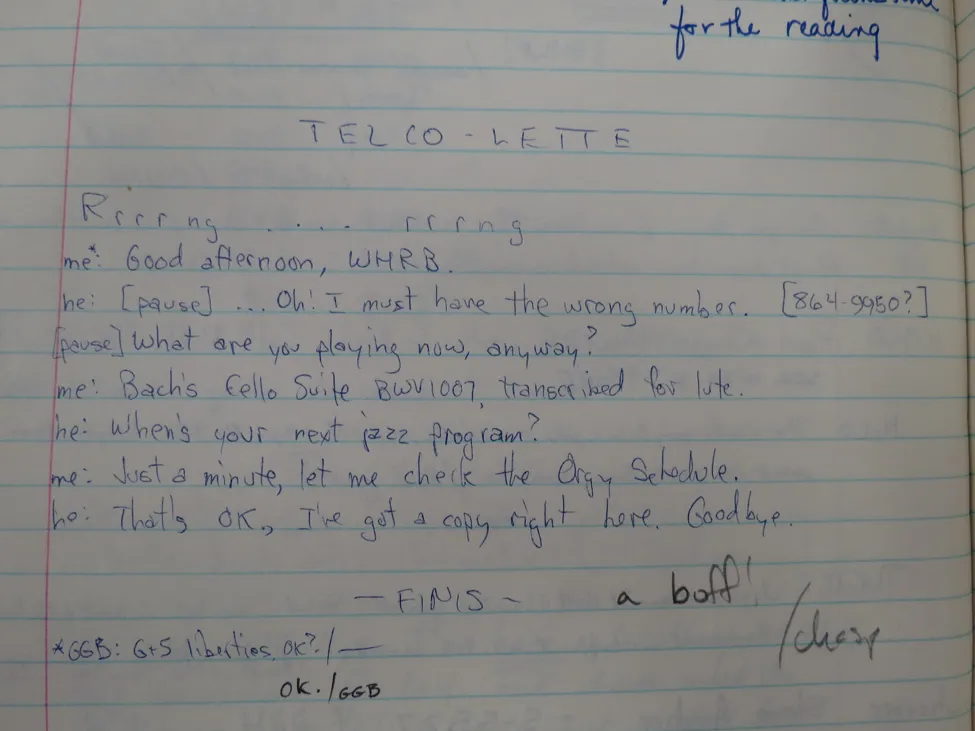 During WHRB’s 77 years, we’ve received quite a few interesting phone calls from our listeners. The most interesting of these phone calls—whether kind, confusing, or just plain funny—are recorded in the station’s Comment Book, for members past, present, and future to enjoy. This allows every member of the station to enjoy feedback from our listeners, even if they usually man the 1 AM to 6 AM shifts.