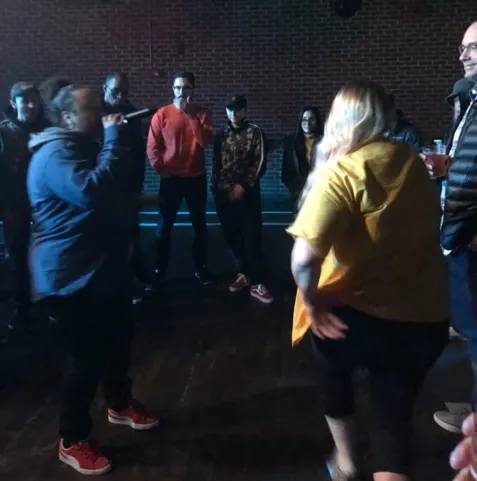 Blimes and Gab come together again to sing the incredibly sweet “I’d rather be hungover with you” before coming down to do a cipher. They’ve been doing ciphers at the end of every show on tour, where they “get down into the crowd, vibe with the community and share the mic with them.” The audience circles up and cheers as members come forward into the middle to spit their bars.