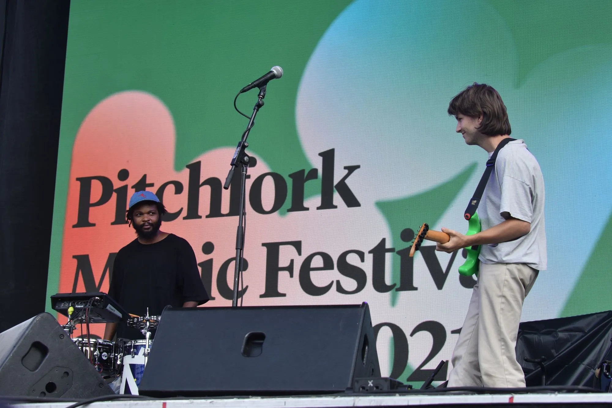 The September Chicago heat was no joke in Union Park. Masks on for many, but masks off for those in the pits. Lines for everything, even water. People elbow to elbow in the front rows, and tons of fans staking out a place for the final act of the night — Phoebe Bridgers. For many, Day 1 of Pitchfork 2021 was a return to live music for the first time since 2020. At points in the day, you could see people attacking mosh pits and screaming their heads off. Other times, energy waned and people stared quizzacly at the big board, hoping for a burst of energy from the performers. But one thing is true: the energy from performance — musicians stomping their feet and belting out into the night — was absolutely electric, and a feeling that will surely continue for the next few days.