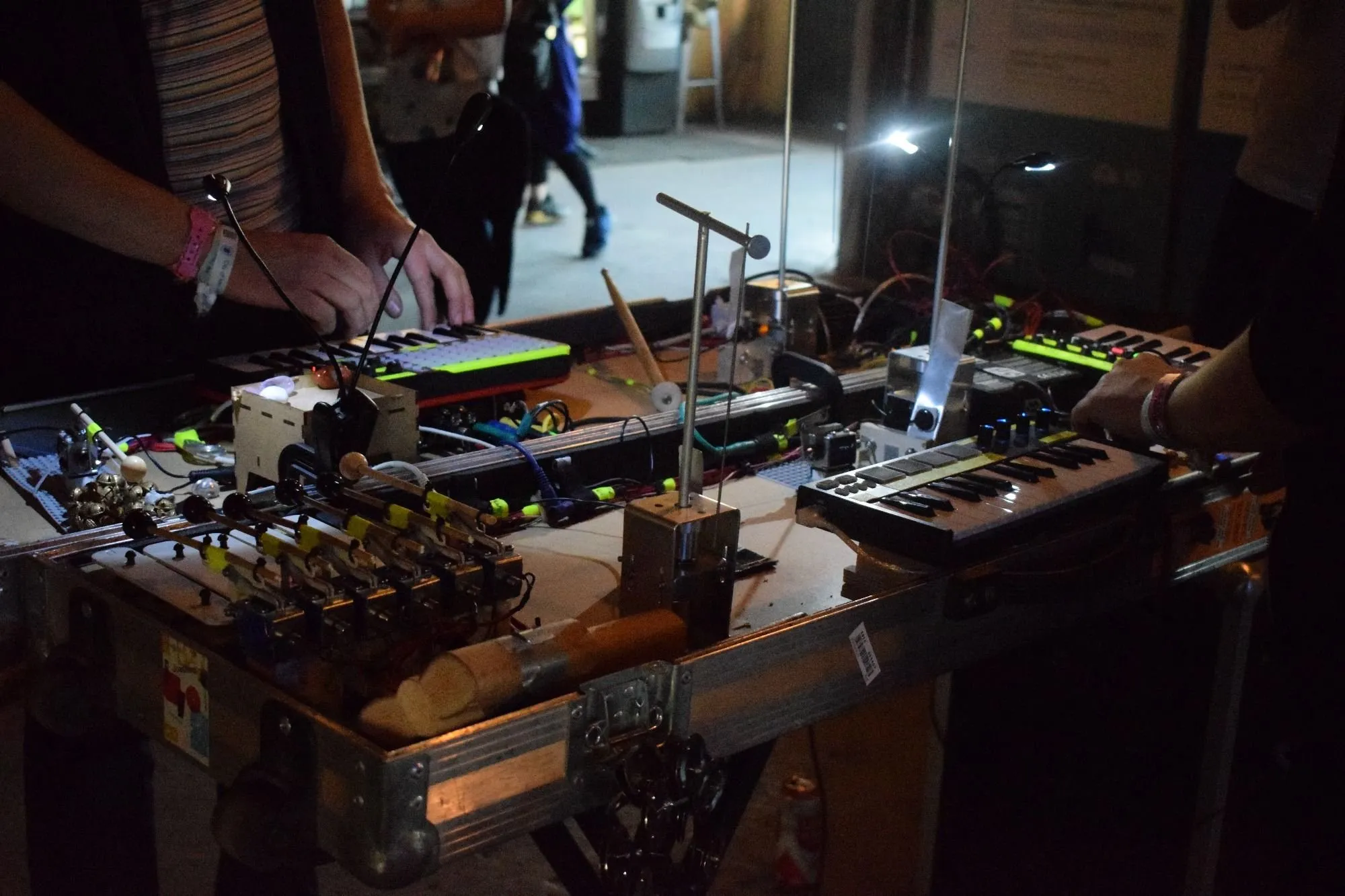 München-based tinkers Joasihno brought their unfolding table of electronic goodies to the bar of Barracuda. With arduino-automated percussionists, bite-sized synths, and travel-savvy cymbals, Joasihno’s portable electro-pop caught Germanophile Austin crowds by storm. From “Iceland to Africa [and] colourful to grey” Joasihno’s set pulls in sounds from far and near, from cold and warm into an invigorating backpack through their one-of-a-kind sonic-cinema.