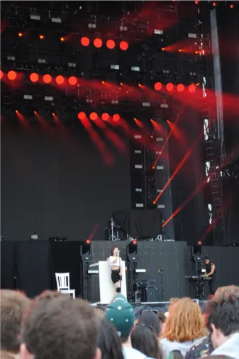 An impressive feature of the Saturday line-up, New York-based indie rock artist Mitski gave an impassioned, multidimensional performance to a packed crowd at the Green Stage. The Japanese-American artist immersed herself in the her indie pop/rock feel of her music. Her singing was coupled with a solo theatrical act, an interpretive dance of sorts. The singer had a white table and chair that she messed with on stage, playing with it and dancing around it. Her performance style is unique, and her whole stage presence seemed to fully inhabit the music. A remarkable performance.