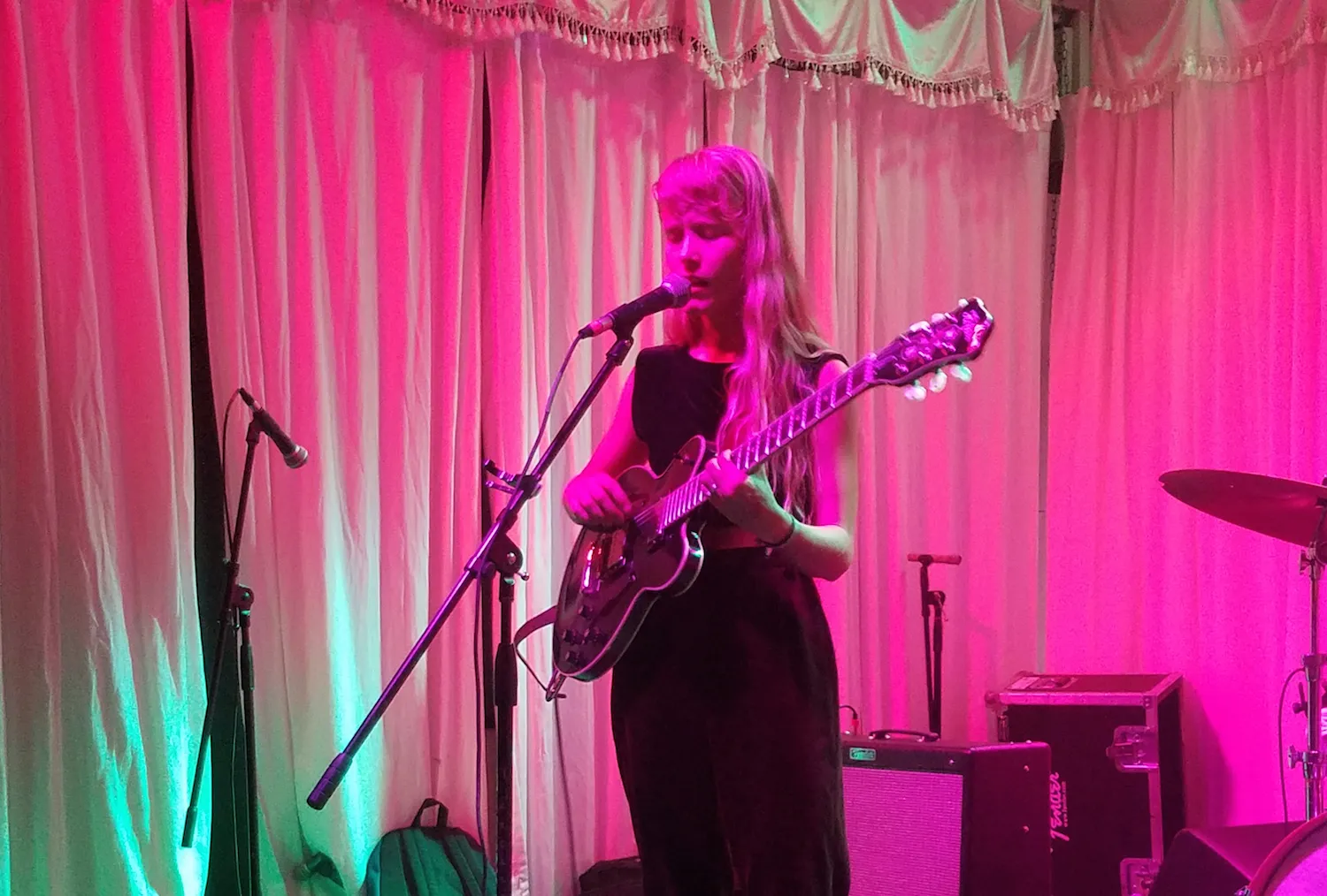 Such lovely stage vibes. Admirably shirks any performer’s pretentiousness, as if playing her music for a group of friends rather than an audience of corporate music business-women. A tender voice with a whimsical vibrato, singing words of grumpy mornings and carpet-ridden existentialism, atop lovely finger picked guitar and her jazz school-procured stand-in bandmates. I truly admire Alice Phoebe for pursuing her career as a musician totally independently, from touring to producing to distribution, maintaining the integrity of busking roots.