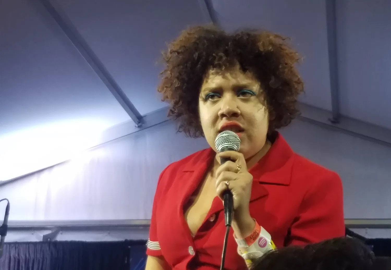 Noname the goddess. A frequent collaborator with Chicago artists like Chance the Rapper & friends, Noname made a name for herself on a national stage this year as a rapper as well as a poet with her critically acclaimed release, Telefone. Her live vocals read like spoken word, and a tight backing band helps make for a moving performance. The set was unfortunately marred by terrible sound, but the crowd was still on it. Definitely one we’d love to catch again, especially in a longer, better engineered set.