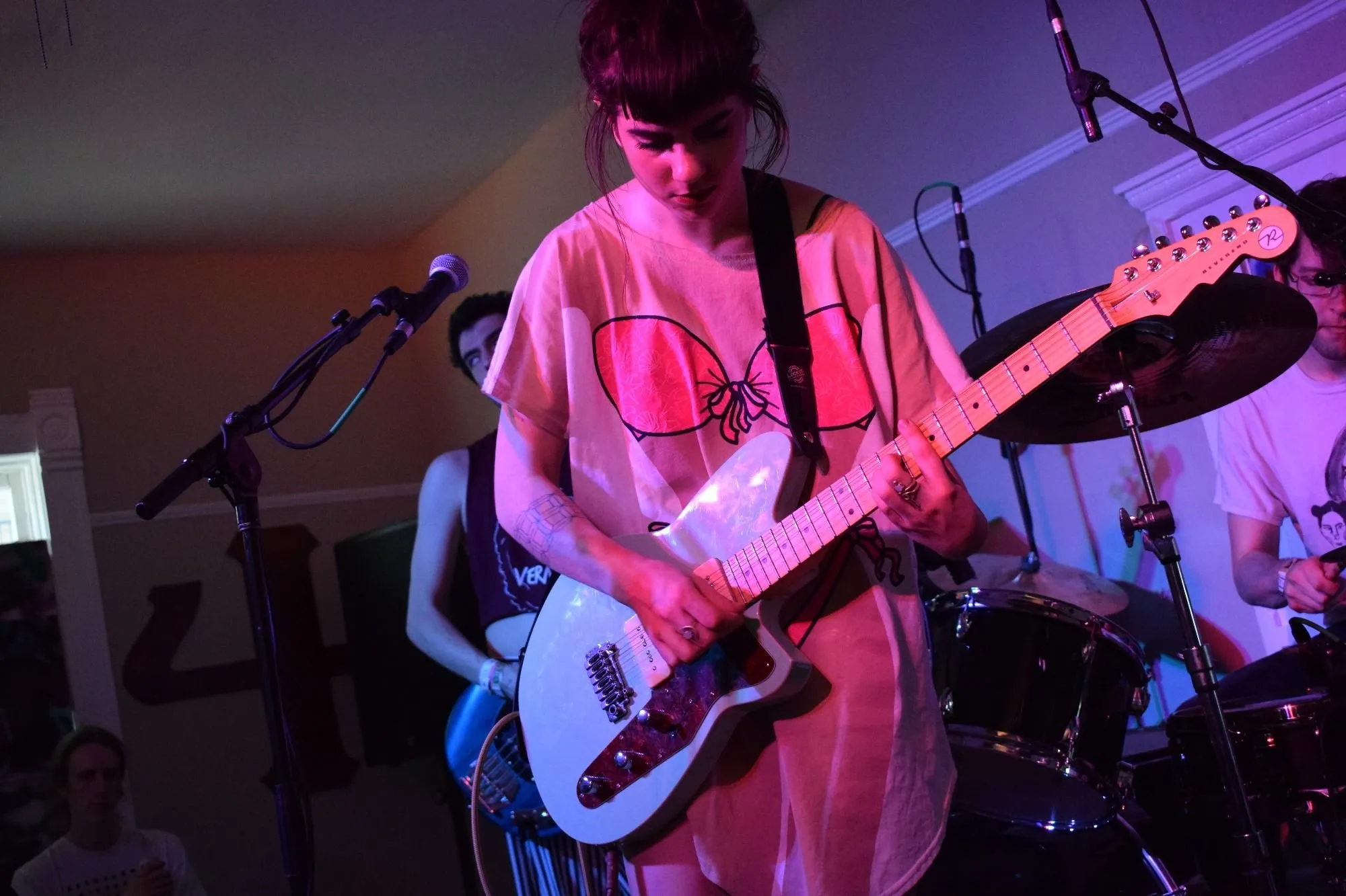 A charming 5 piece from none other than the DIY-blossoming Philadelphia, Kississippi’s live set was honest and ear-catching. Mixing simple guitar and synth lines over nostalgic common-tone chord progressions, their comfy living room-vibes transformed a looming Texas frat house into a cozy, intimate space.