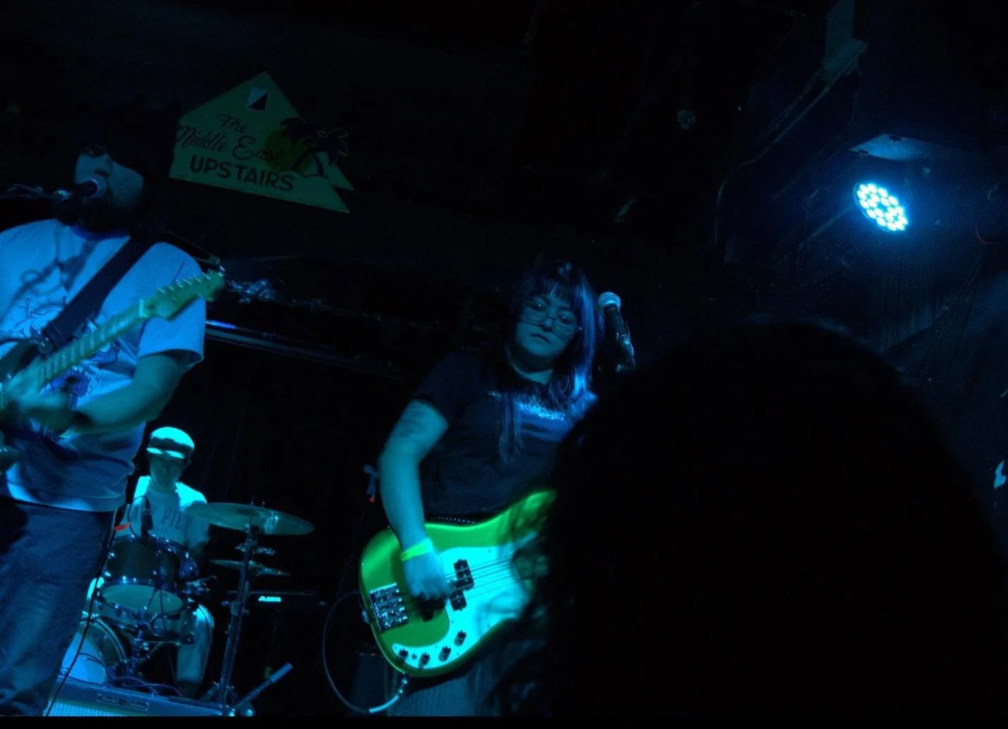 Couch Dog captivated the audience Wednesday night at the Mid-East Upstairs, delivering a performance full of energy and unique creative styles. While primarily an indie/garage rock band, the group is known for experimenting with electronic noise, plucky riffs, and various tones. The four-person ensemble includes Max Ferrer on lead vocals and guitar, Tasha Lee on bass, Pablo Acosta on guitar, and Liam Reece on drums. Their talents and techniques truly delighted the crowd.