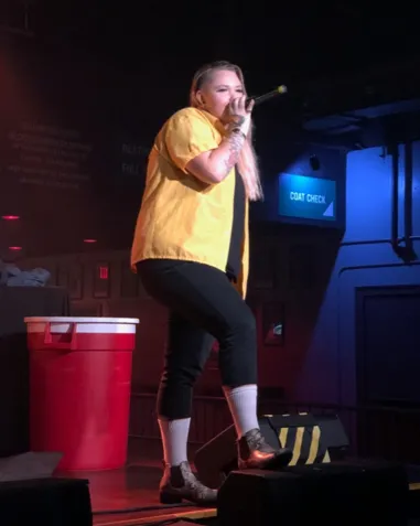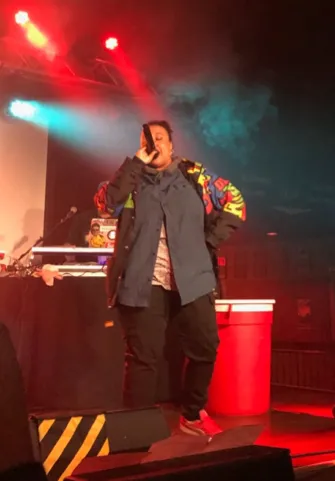 Blimes and Gab come together again to sing the incredibly sweet “I’d rather be hungover with you” before coming down to do a cipher. They’ve been doing ciphers at the end of every show on tour, where they “get down into the crowd, vibe with the community and share the mic with them.” The audience circles up and cheers as members come forward into the middle to spit their bars.
