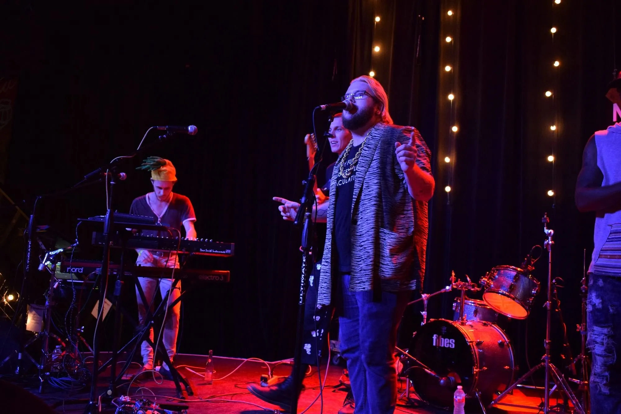 A charming 5 piece from none other than the DIY-blossoming Philadelphia, Kississippi’s live set was honest and ear-catching. Mixing simple guitar and synth lines over nostalgic common-tone chord progressions, their comfy living room-vibes transformed a looming Texas frat house into a cozy, intimate space.